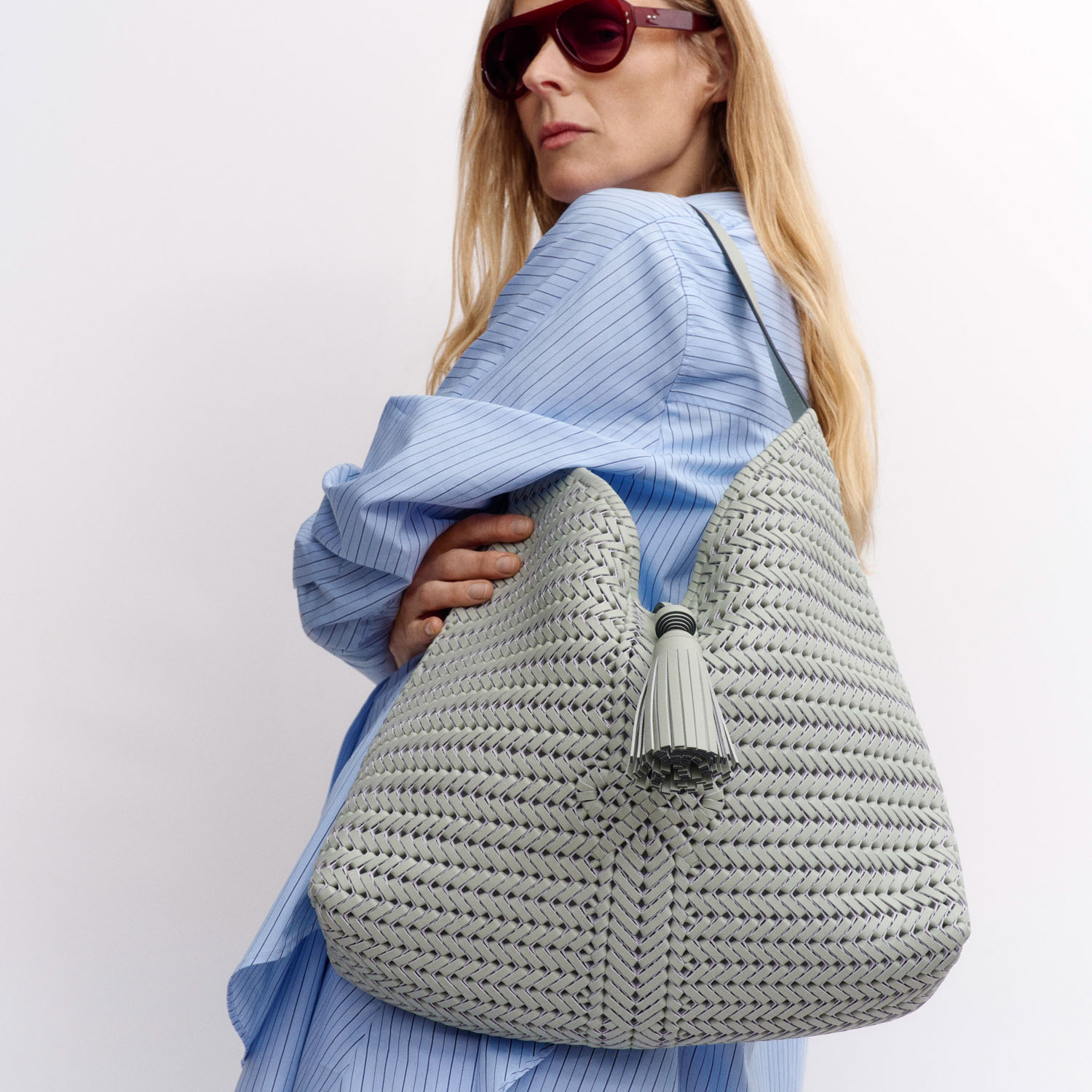 The Neeson collection is a line up of elegant woven leather bags, from clutches to totes, every style is versatile and lightweight, the perfect designs for all seasons. Each hand-woven bag takes several days to make and incorporates our signature woven bow.
