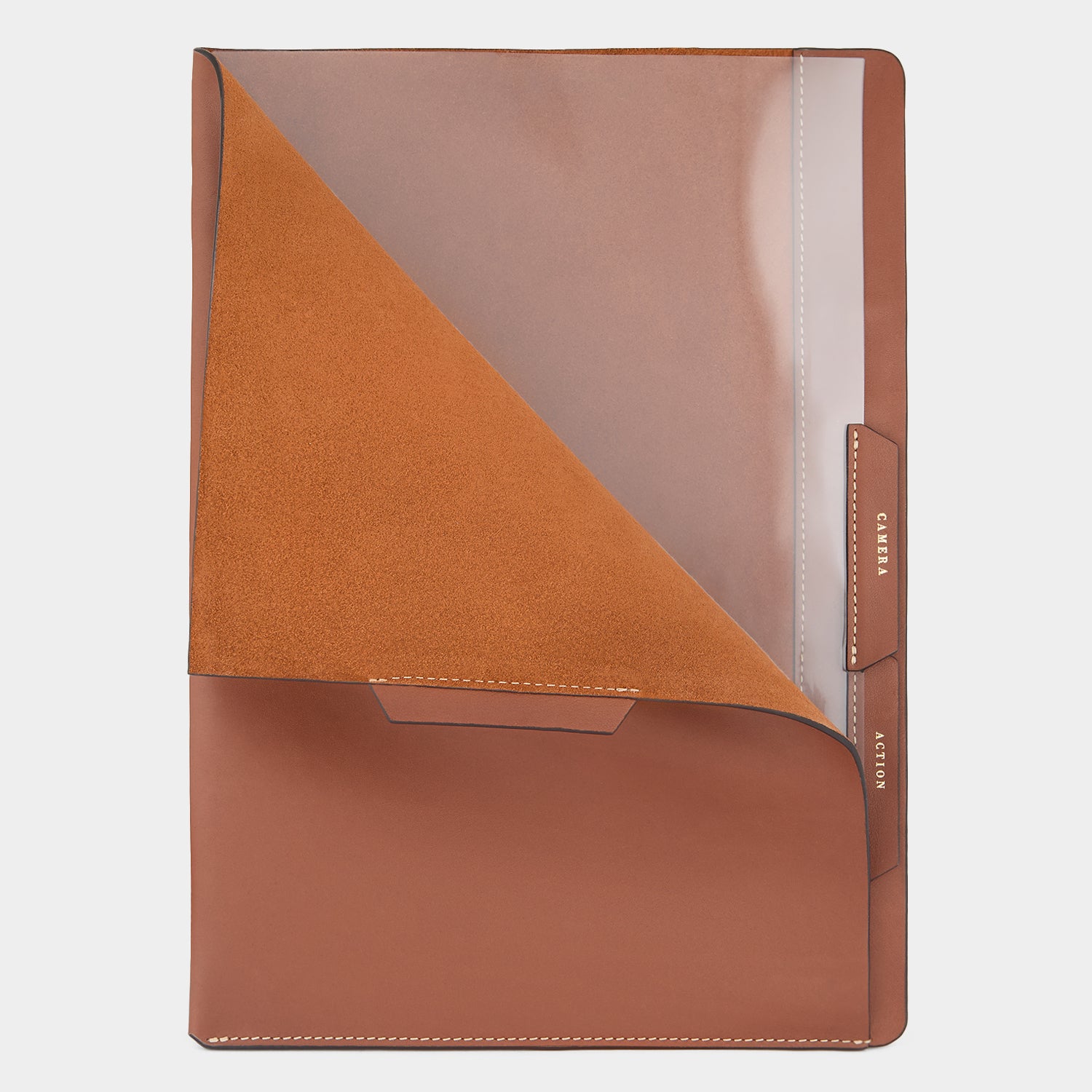 Our A4 Sleeve is completely personalisable, with your choice of embossing on the front cover and tabs. Finely crafted from tan polished leather with clear inserts, it will keep notes, documents and papers stylishly organised.