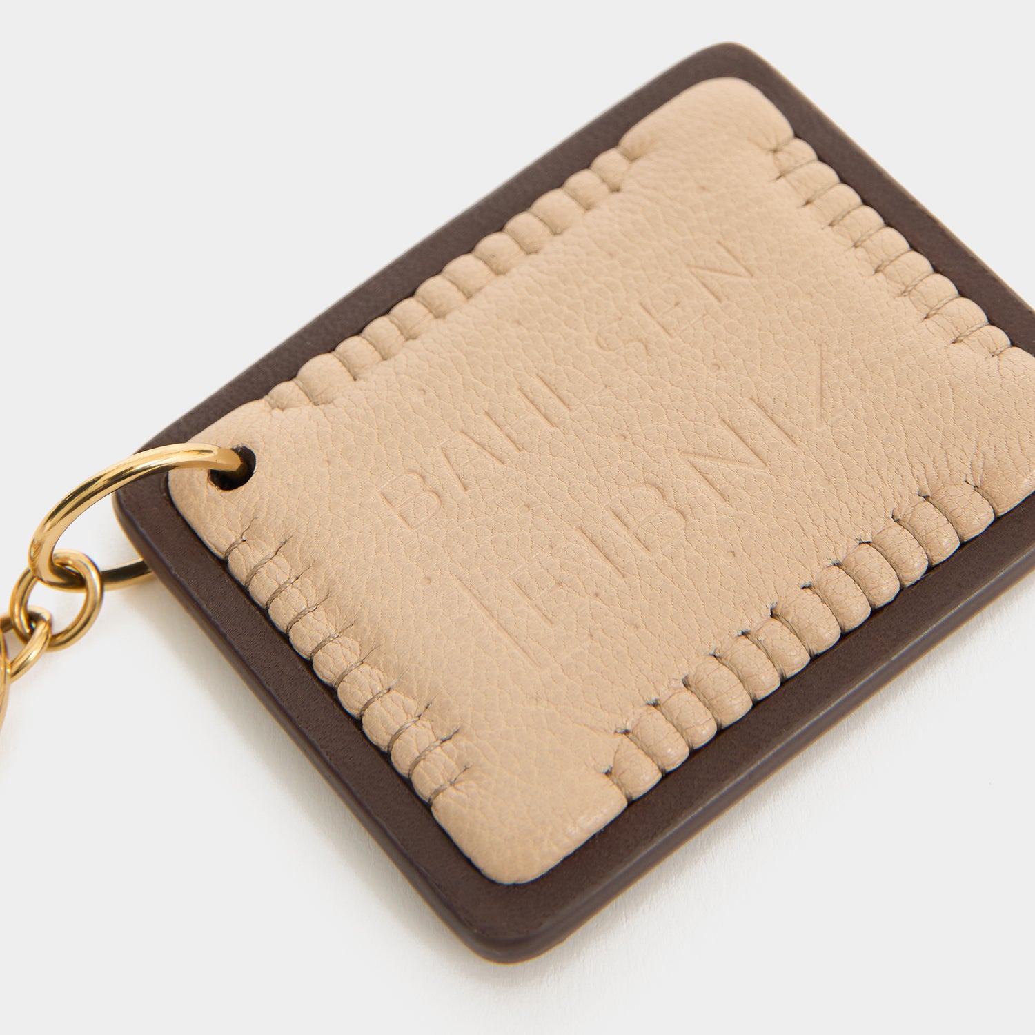 Our Choco Leibniz Charm is meticulously crafted from chocolate capra leather to resemble the iconic biscuit. Use it as a keyring or attach the golden clasp to the outside of your favourite tote, alone or with a cluster of other charms.