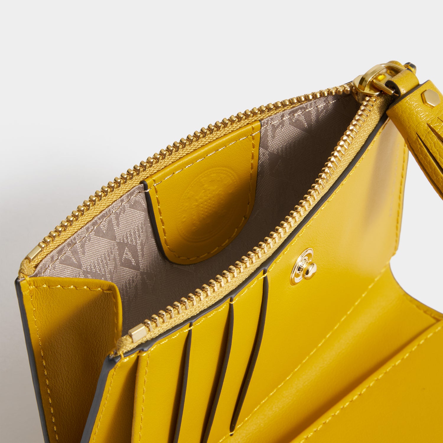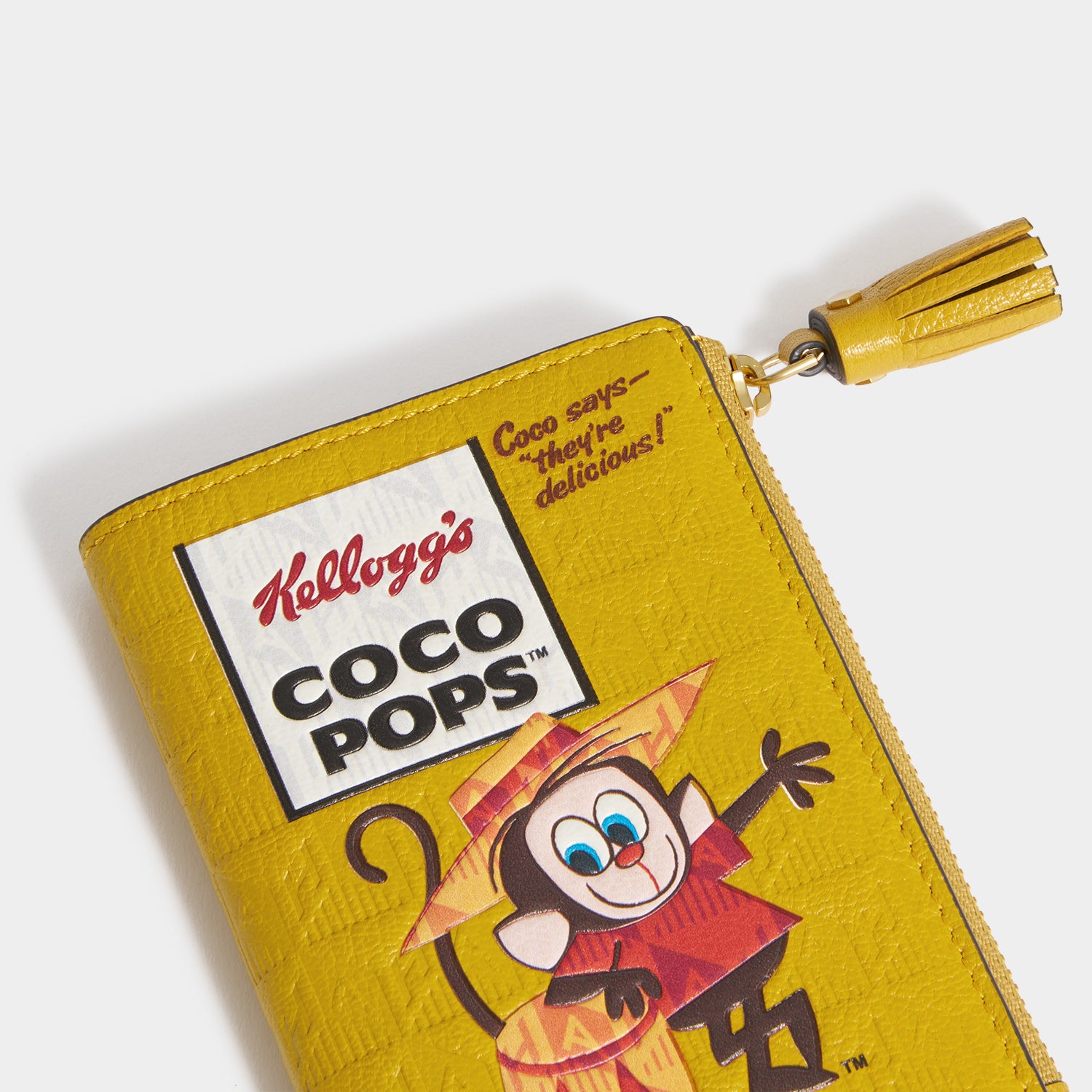 We designed the Coco Pops Folding Wallet to bring joy to daily errands. Printed with vintage artwork, it is made from monogrammed capra leather and has slots for cards and a pocket for spare change, complete with our trademark tasselled zip.