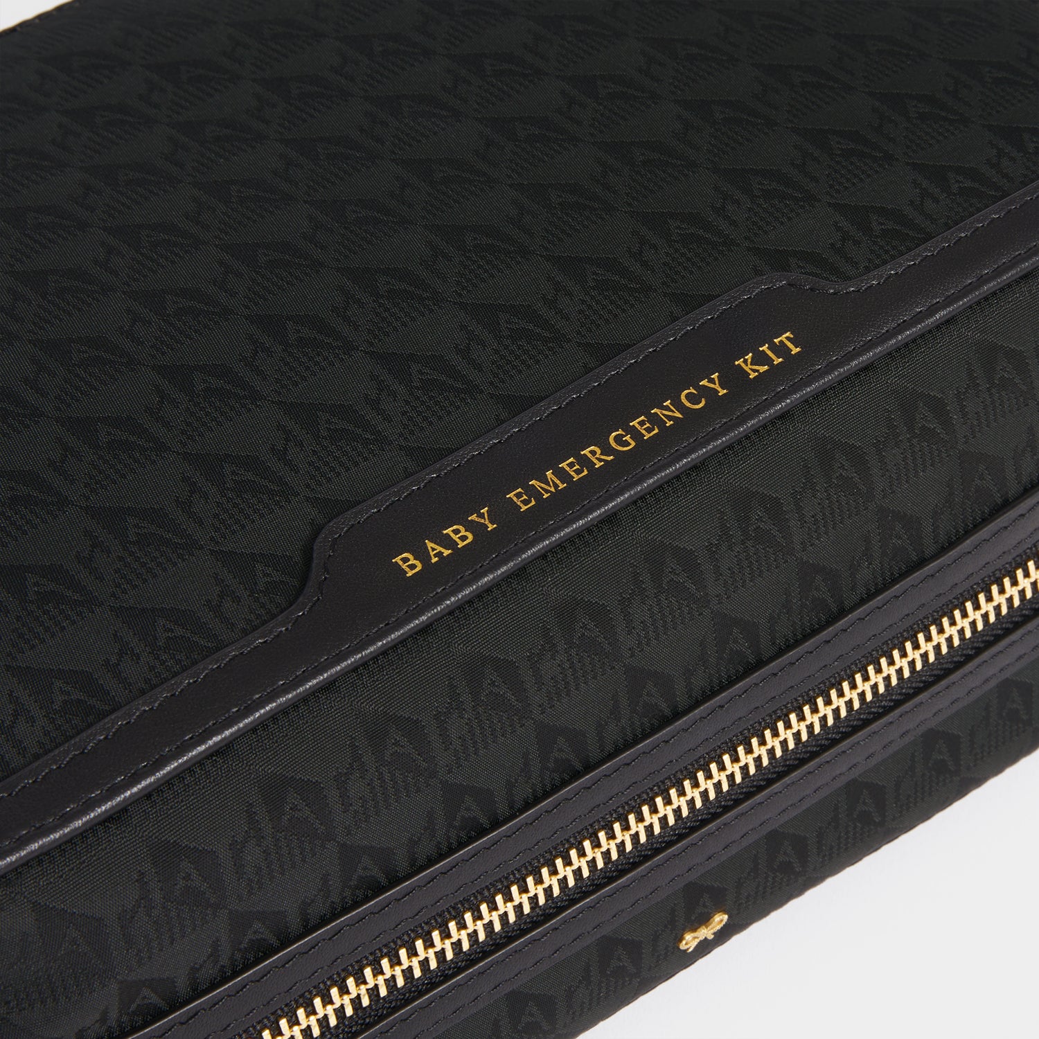 Inspired by Anya's passion for labelling, the Baby Emergency Kit is the perfect accessory for parents and new-borns. This compact kit comes complete with changing mat and various labelled pockets and compartments for easy organisation. Beautifully finished with patent trim and our signature tassel zip fastening and Anya Hindmarch bow.