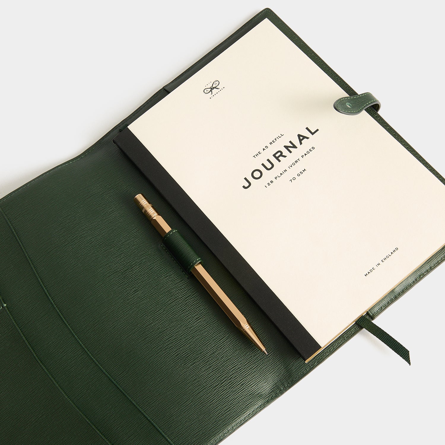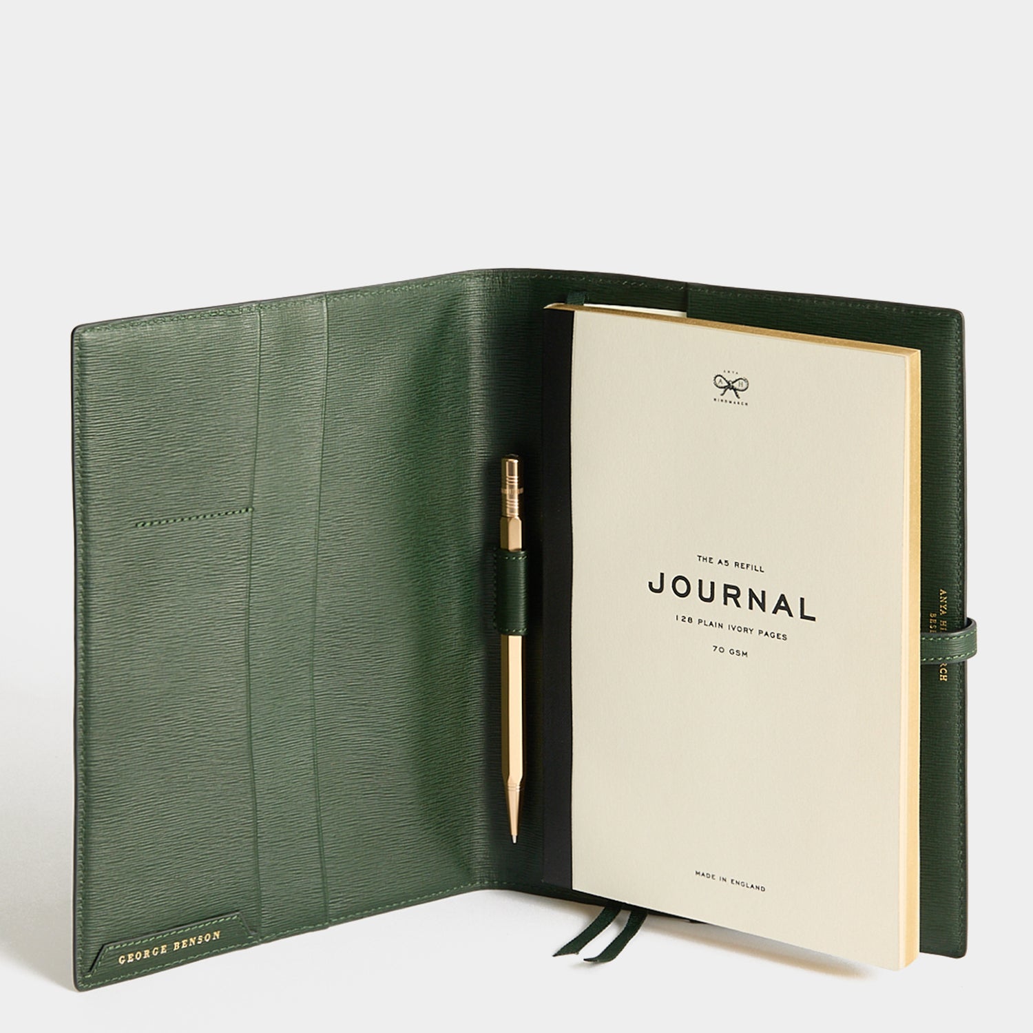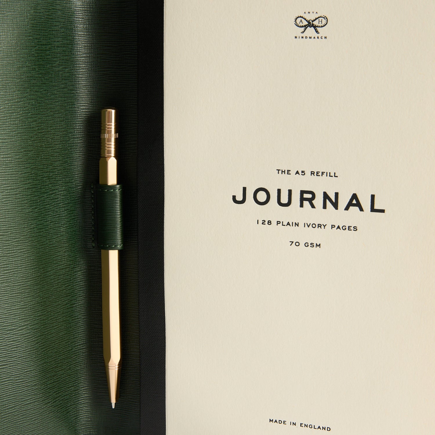A small leather journal which comes with our signature retractable pencil and holds a refillable notebook with the finest paper (No. 5). Personalise it with a name or initials and a message or drawing to make it unique.