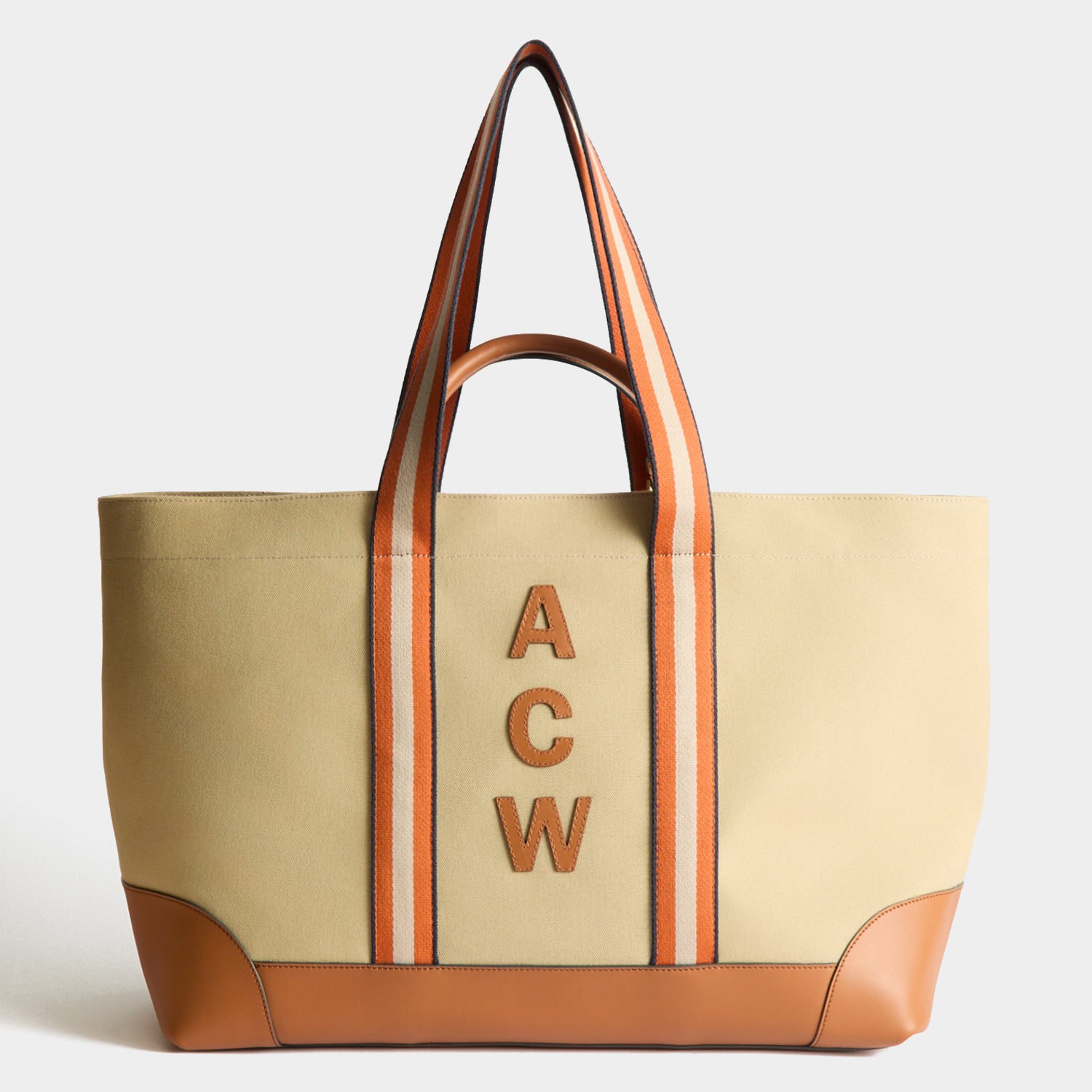 Put your personal stamp on our Bespoke Walton E/W Tote with an appliquéd leather monogram. Crafted from lightweight canvas with a reinforced leather base, this generously sized bag is perfect for travel days. It comes finished with nastro straps, to match the other pieces in the Walton luggage collection.