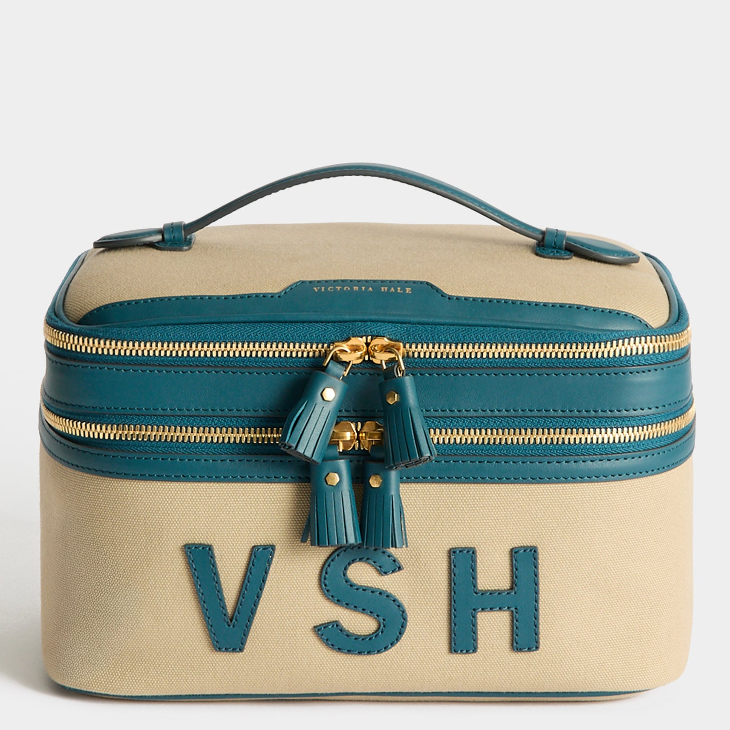 When you’re travelling, keep dressing table essentials stylishly stowed in the Bespoke Walton Vanity Kit. Part of our Walton luggage collection, it is crafted from lightweight canvas and trimmed with circus leather, and can be personalised with an appliquéd monogram and embossed name. Unfasten the tasselled zippers to reveal two compartments – a top layer for tools and a roomier section for make-up and toiletries.