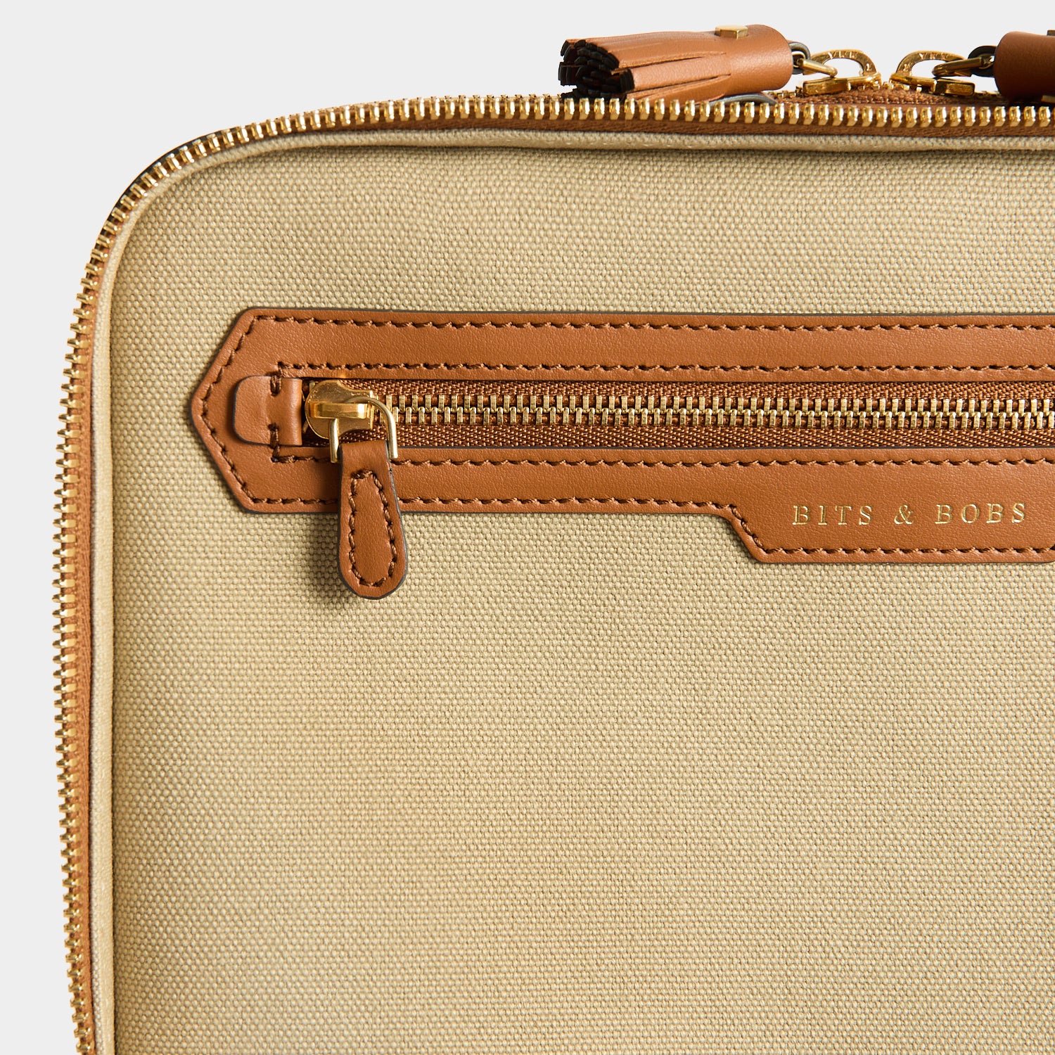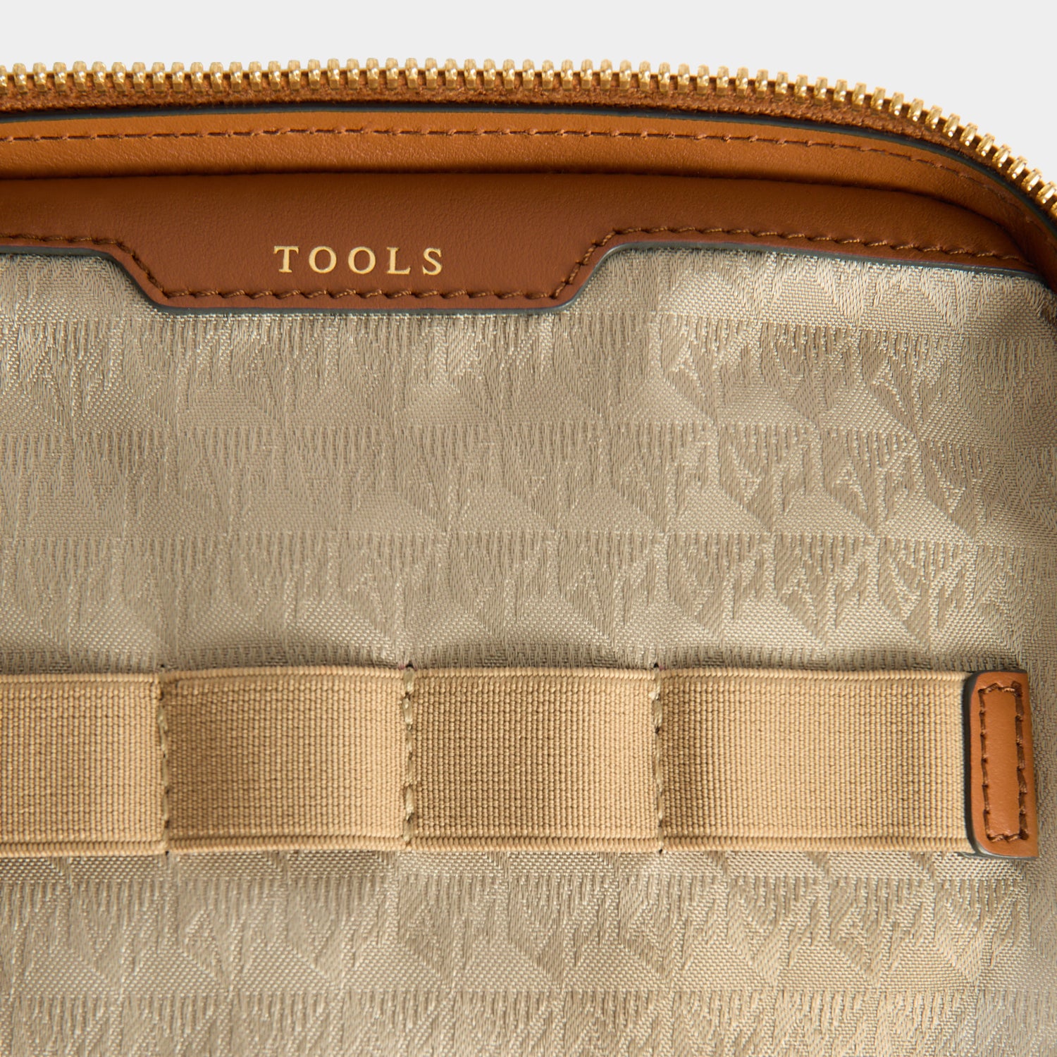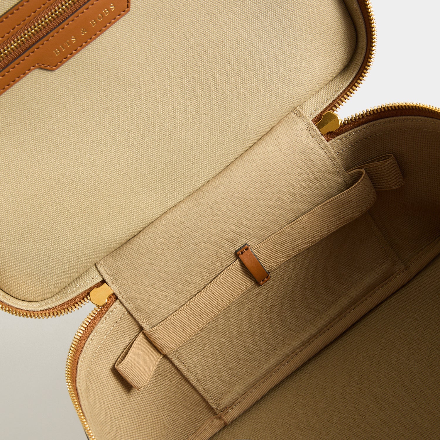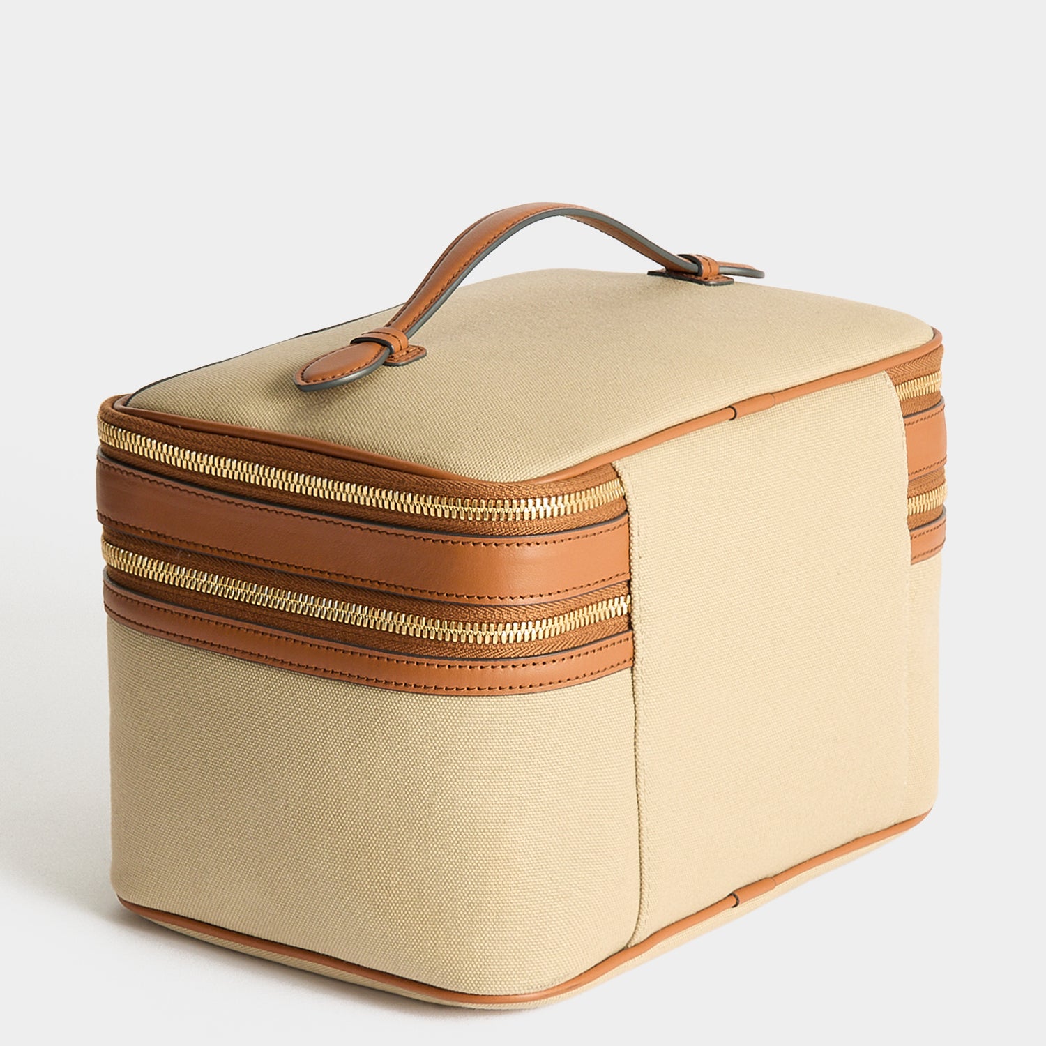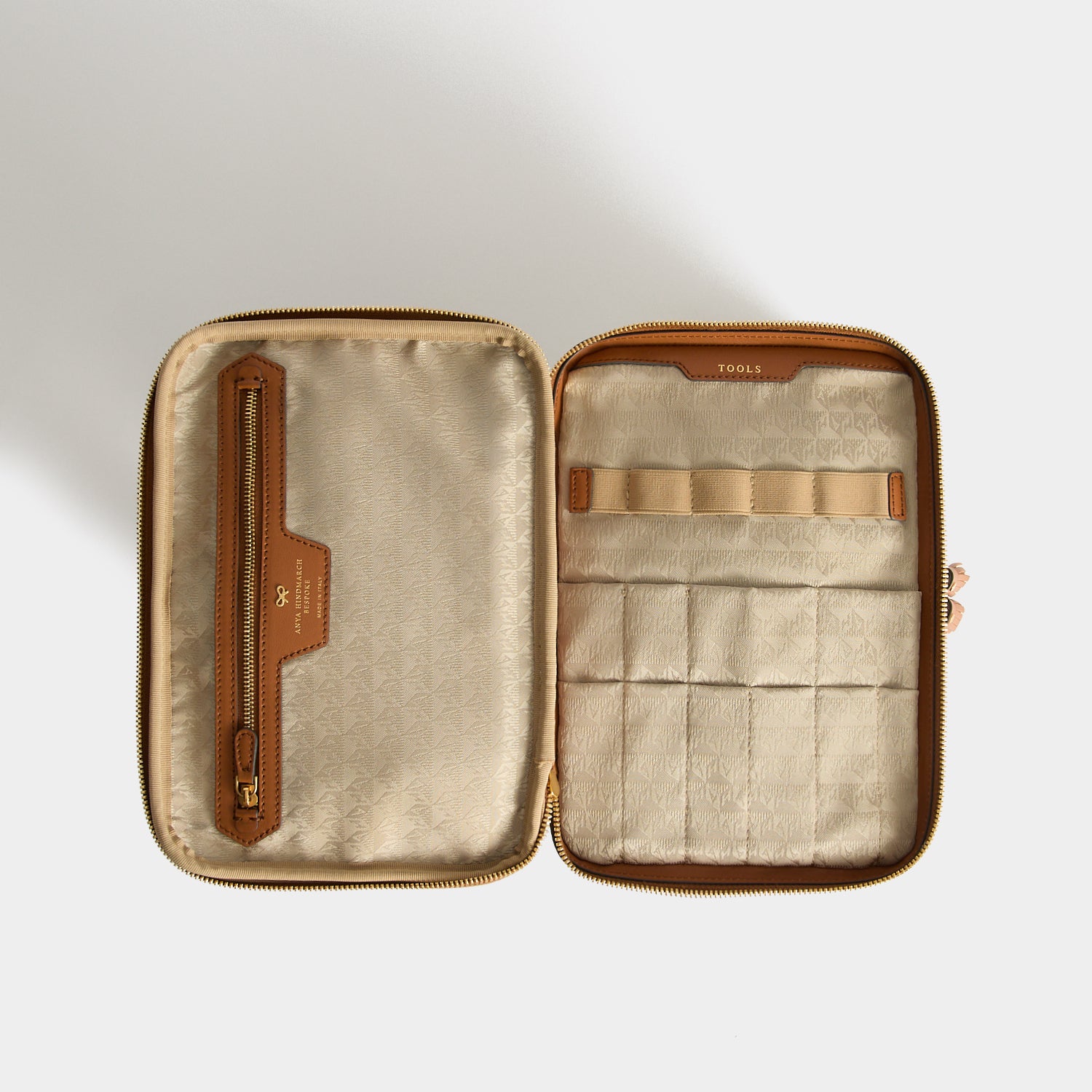 When you’re travelling, keep dressing table essentials stylishly stowed in the Bespoke Walton Vanity Kit. Part of our Walton luggage collection, it is crafted from lightweight canvas and trimmed with circus leather, and can be personalised with an appliquéd monogram and embossed name. Unfasten the tasselled zippers to reveal two compartments – a top layer for tools and a roomier section for make-up and toiletries.
