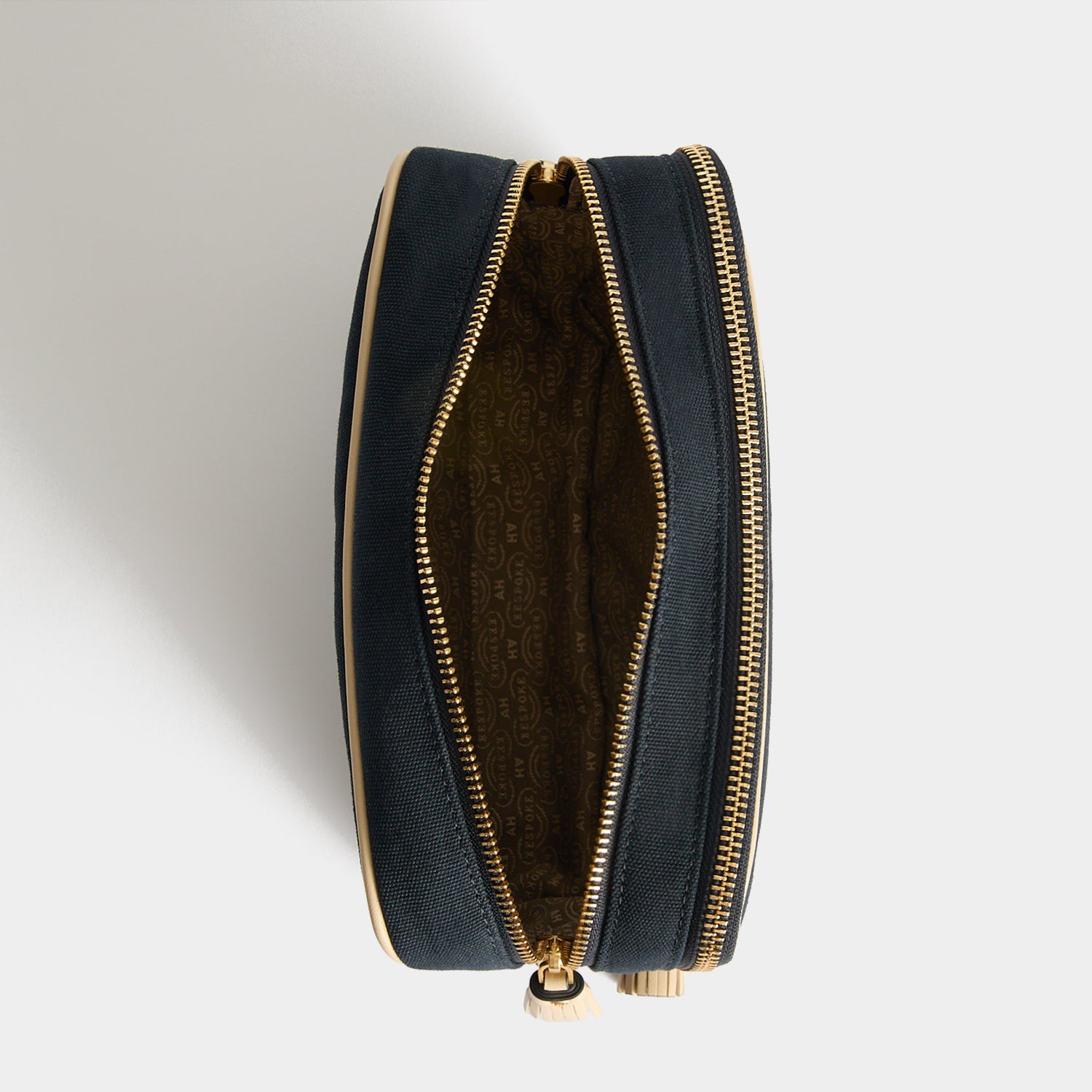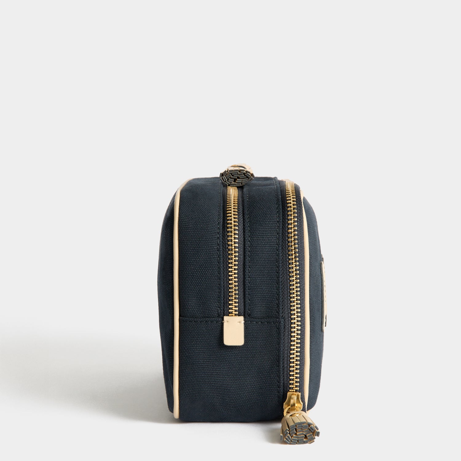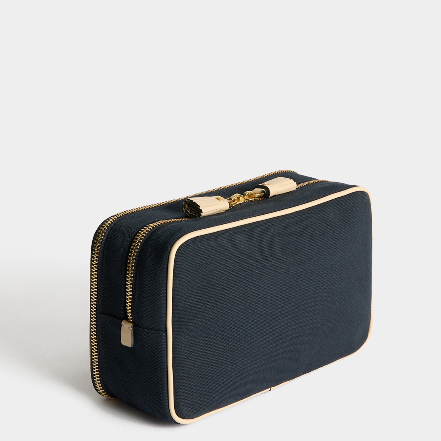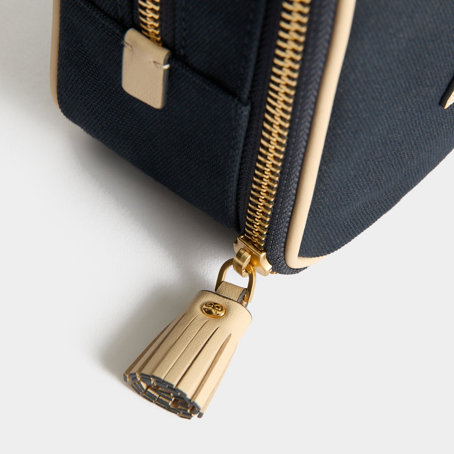 Personalised with an appliquéd leather monogram, our Bespoke Walton Wash Bag offers a stylish way to transport bathroom essentials. It is made from silk calf leather and accented with our trademark tasselled zips. Inside, there are two sections, with labelled compartments for makeup tools, 'unmentionables', and other getting-ready essentials.