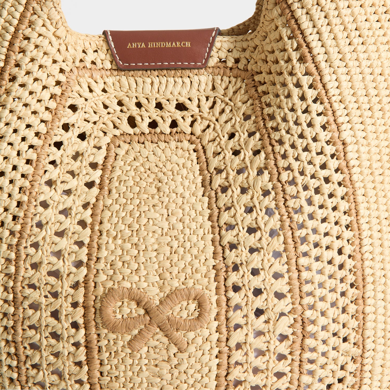 Internal features: Whipstitched interior slip pocket with leather tab with Anya Hindmarch bow and logo