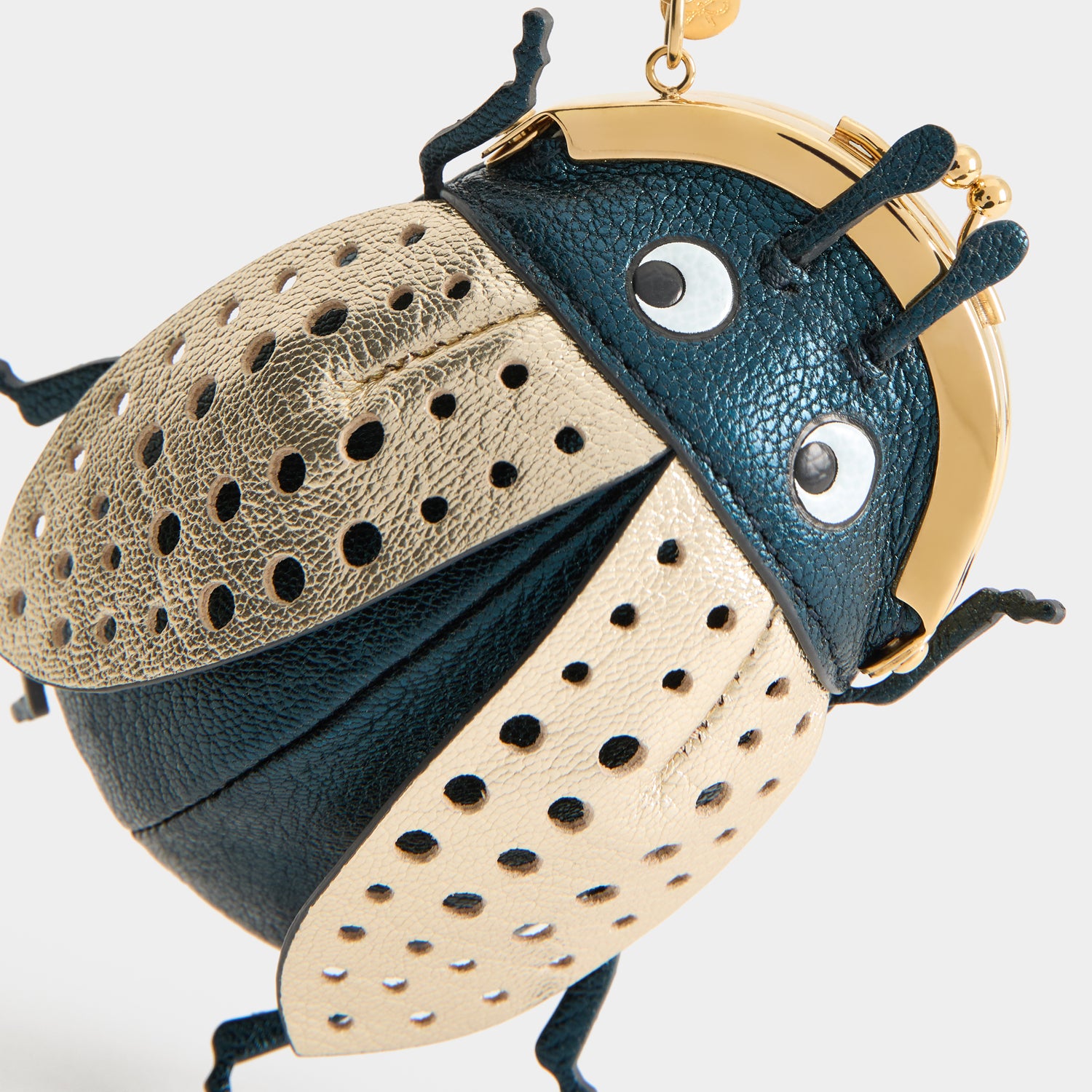 Organise loose change while adding character to your favourite tote with the Charm Bug Coin Purse. It is intricately crafted from Leather Working Group-certified metallic capra leather, complete with six legs, antennae and a pair of golden wings. Access coins by opening the golden clasp and attach it to your bag via the clip.