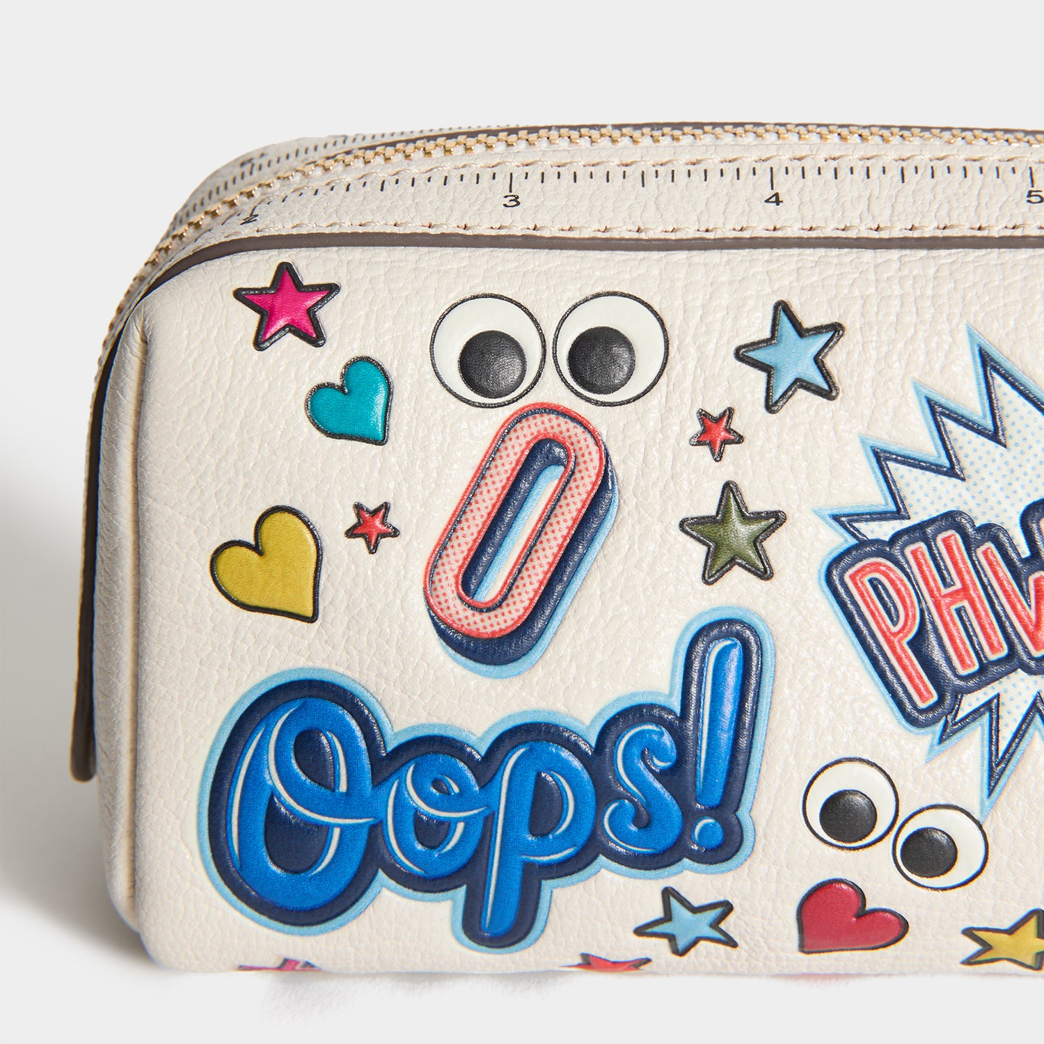 An Anya classic, our Girlie Stuff pouch is the perfect place to stow makeup, tissues, hand cream and other bits and bobs within a larger tote or bag. It's crafted from chalk capra leather and features some of our favourite stickers and a tasselled zip.