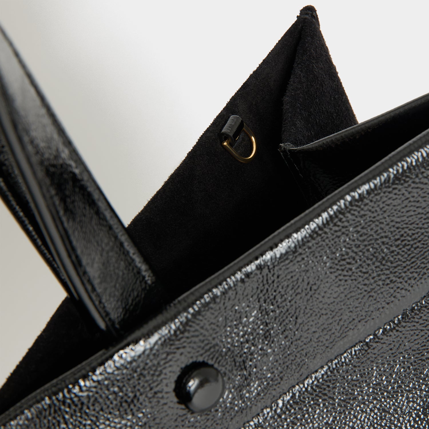 Elegant and practical, the Mortimer Tote is designed to house everything you may need during a busy workday, with an internal pocket for a laptop or notebook, and a slip pocket for your phone. This version is finely crafted from black suede and patent leather, both gold-rated by the Leather Working Group. Adjust the shoulder straps to your desired length and fasten the bag with the gold-tone turnlock closure while on your daily commute.