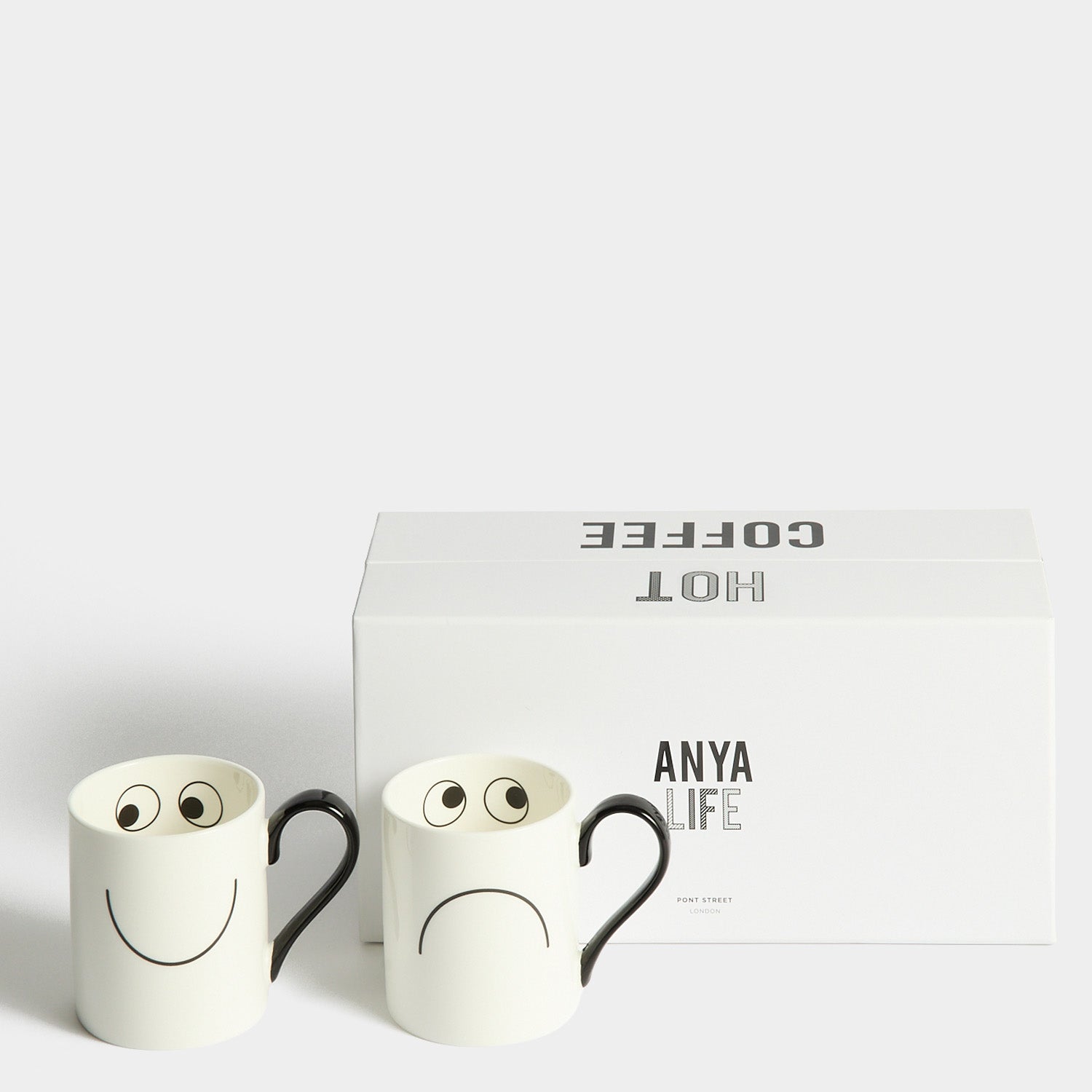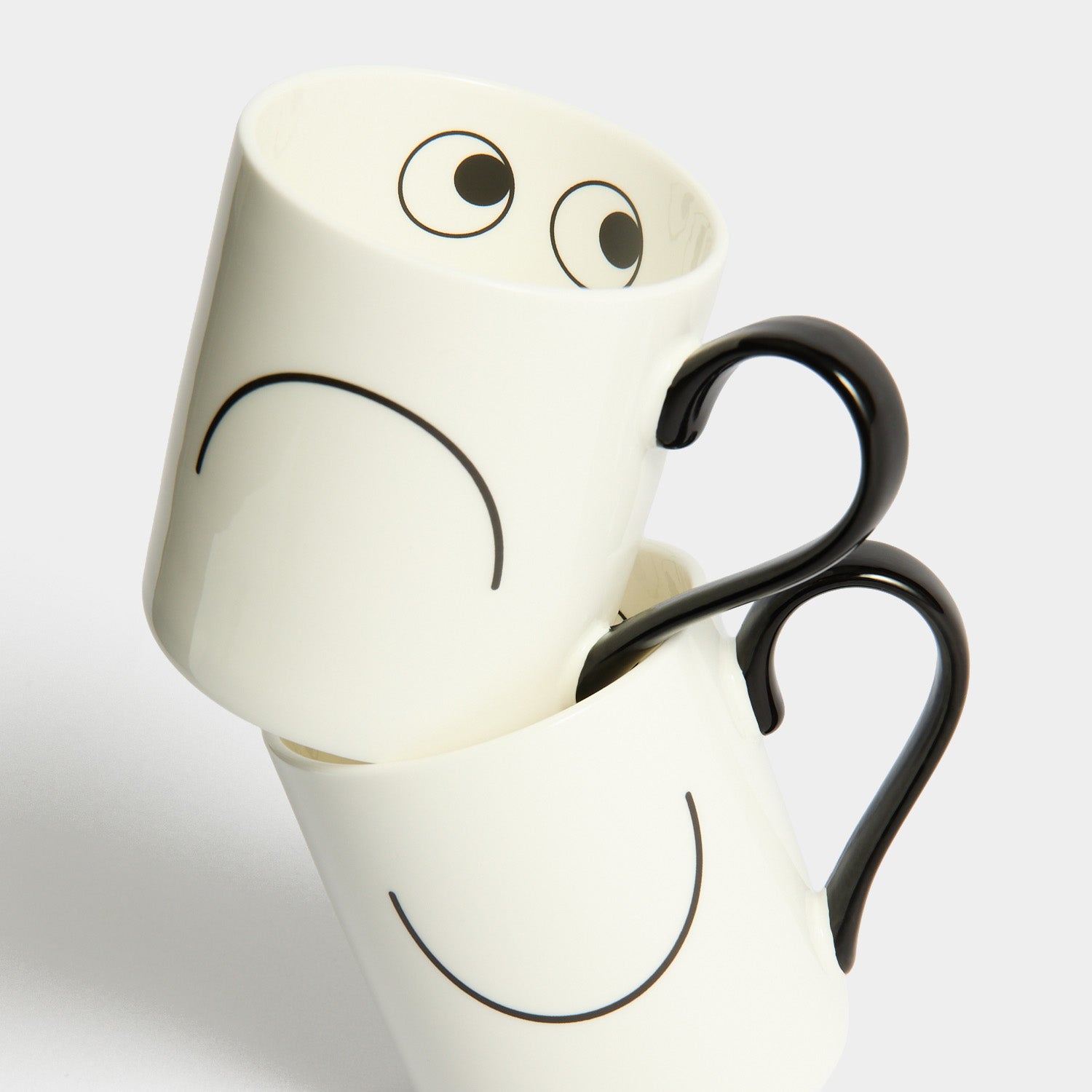 Introducing our first ceramics collection, a line up of playful pieces to add character to your kitchen, to animate your shelves and provide great gifts. Our fresh white designs are hand painted in Stoke-on-Trent, then carefully wrapped into our sleek made-to-keep boxes. Printed with our signature eyes and happy and grumpy faces, these mugs make the perfect gift for yourself or your favourite caffeine addict.