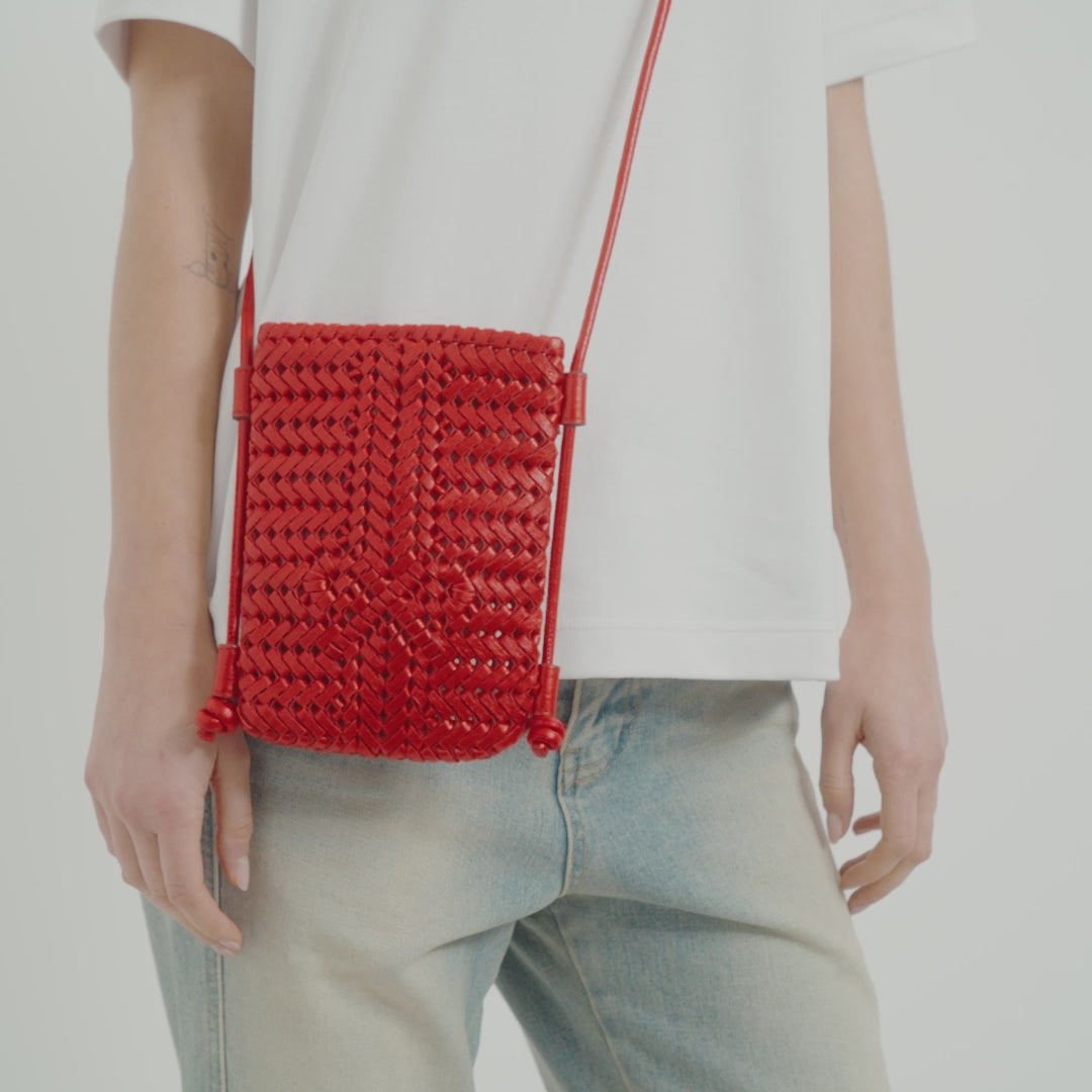 Just like each piece in the Neeson collection, the Cross-Body Pouch is a feat of craftsmanship. It is handwoven from tomato-red shiny capra leather over technical mesh to create a strong but lightweight ‘basket’, and takes a total of six hours to make. It has a magnetic closure and single slip pocket, which is ideal for your most-used card.