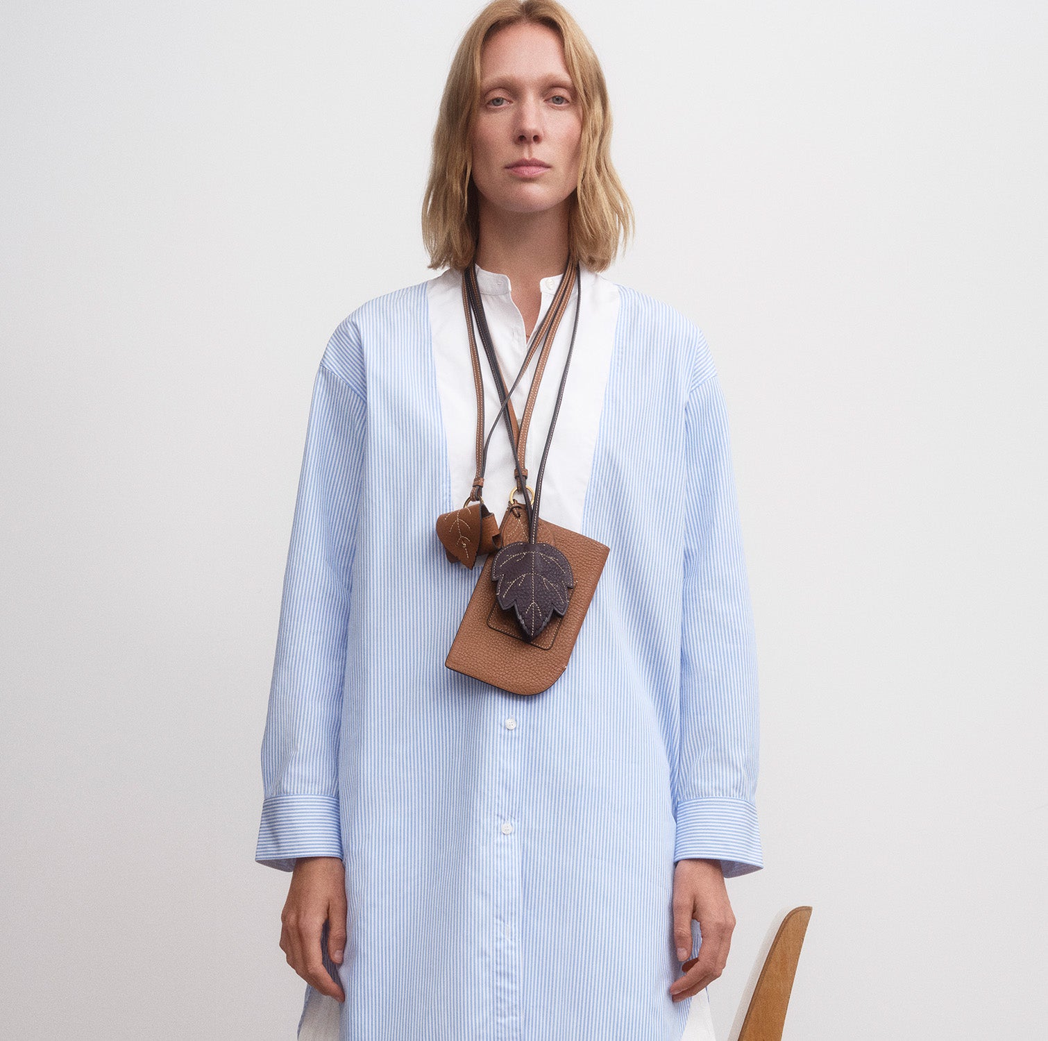 Part of our Return to Nature collection, this earphone case is made from compostable and biodegradable leather with a gold rating from the Leather Working Group. It has a leaf-shaped design, with contrast stitching and a long strap that can be looped around the handle of a bag.