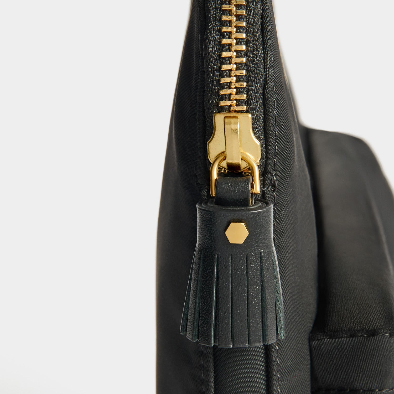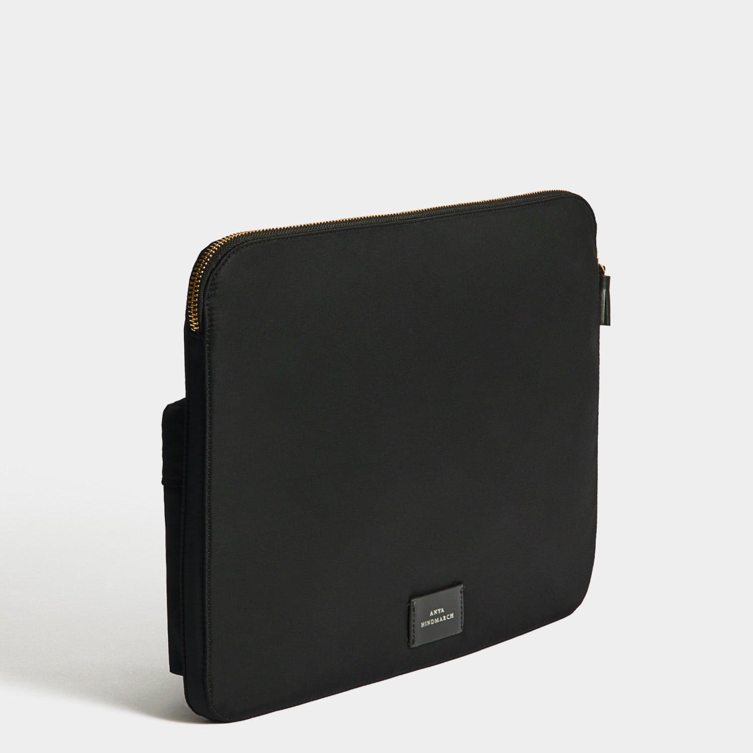 Our Eyes Technology Case is designed to keep your laptop protected while commuting or travelling. Made from black ECONYL® regenerated nylon, it has a pair of leather eyes, a tasselled zip and two pockets – a zippered one on the outside for tech accessories, and one inside, for cards.
