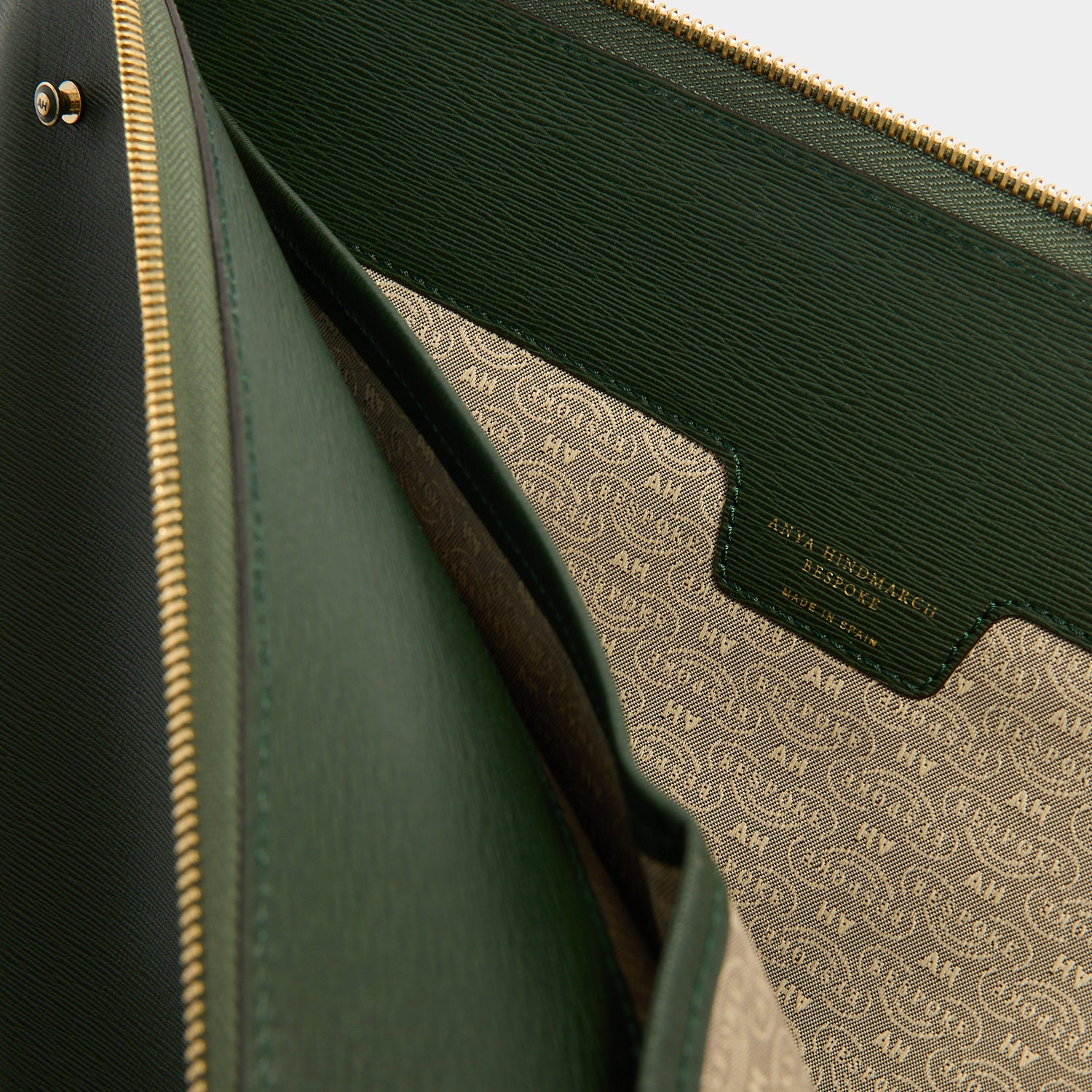 Internal features: Embossed Anya Hindmarch logo, slip pocket, contrast lining
