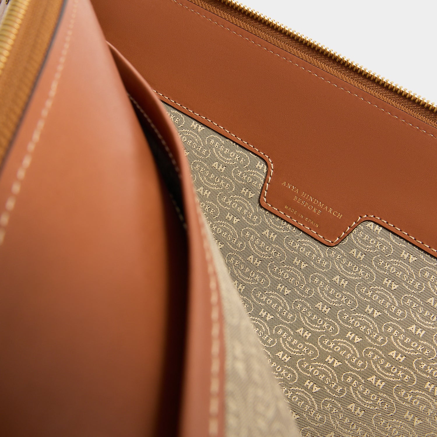 Internal features: Embossed Anya Hindmarch logo, slip pocket, contrast lining