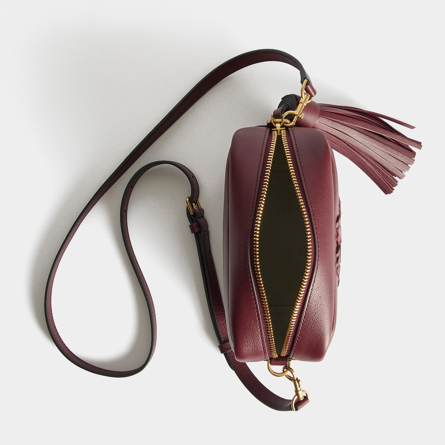 The Neeson Tassel Cross-body will likely become your new favourite bag, thanks to its compact size, deceivingly roomy interior, and extra-special detailing. It's made from medium red capra leather, gilded with gold-tone hardware, and finished with our handwoven bow motif and oversized tassel. Inside, there is ample room for your phone, wallet, and other essentials.
