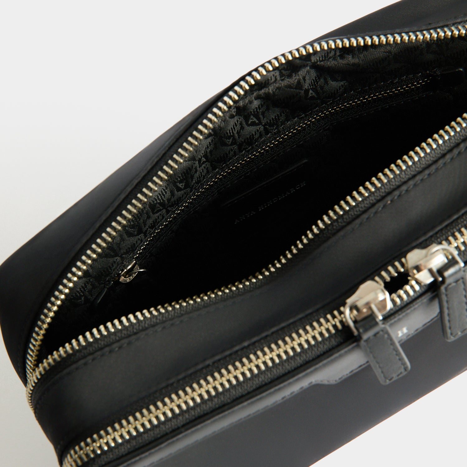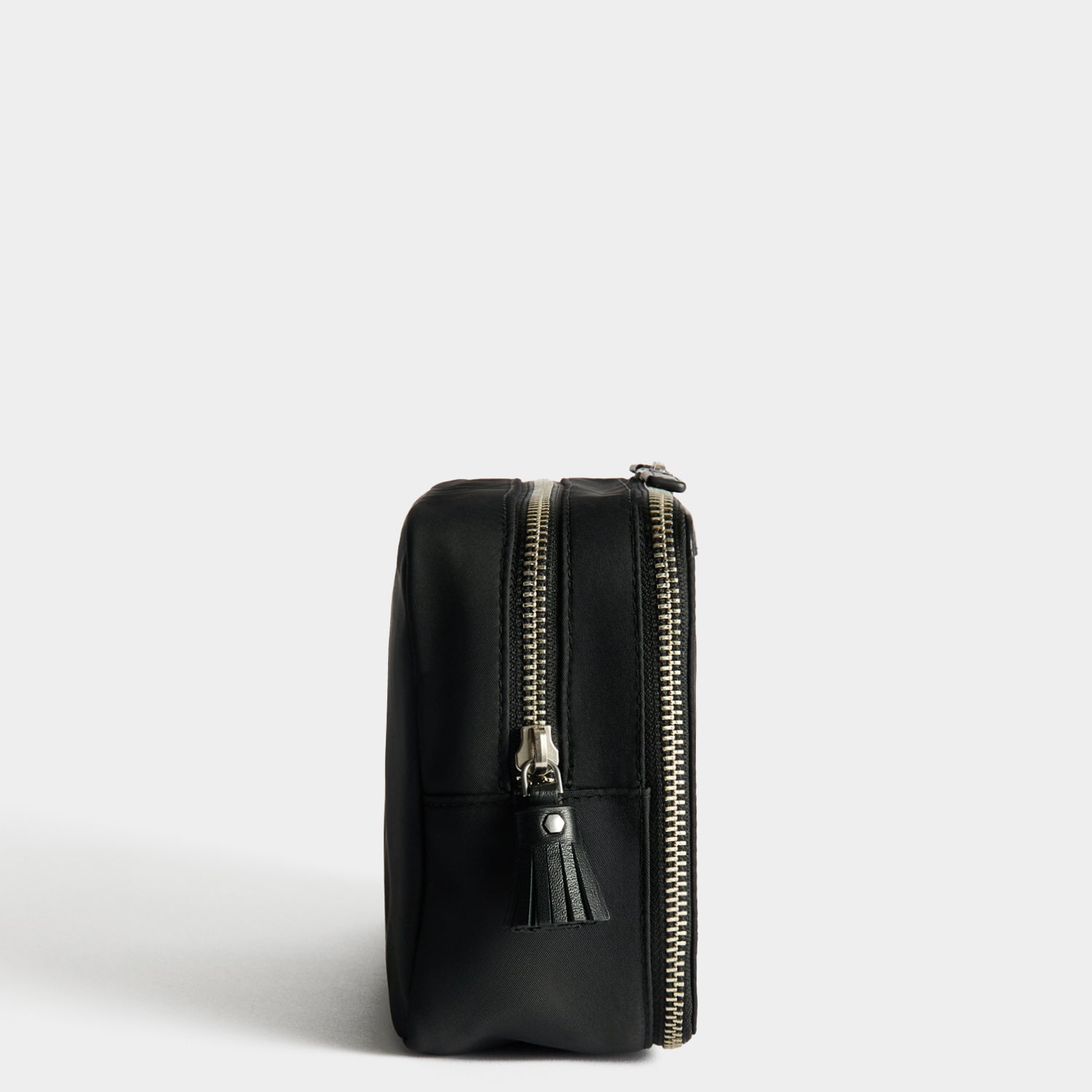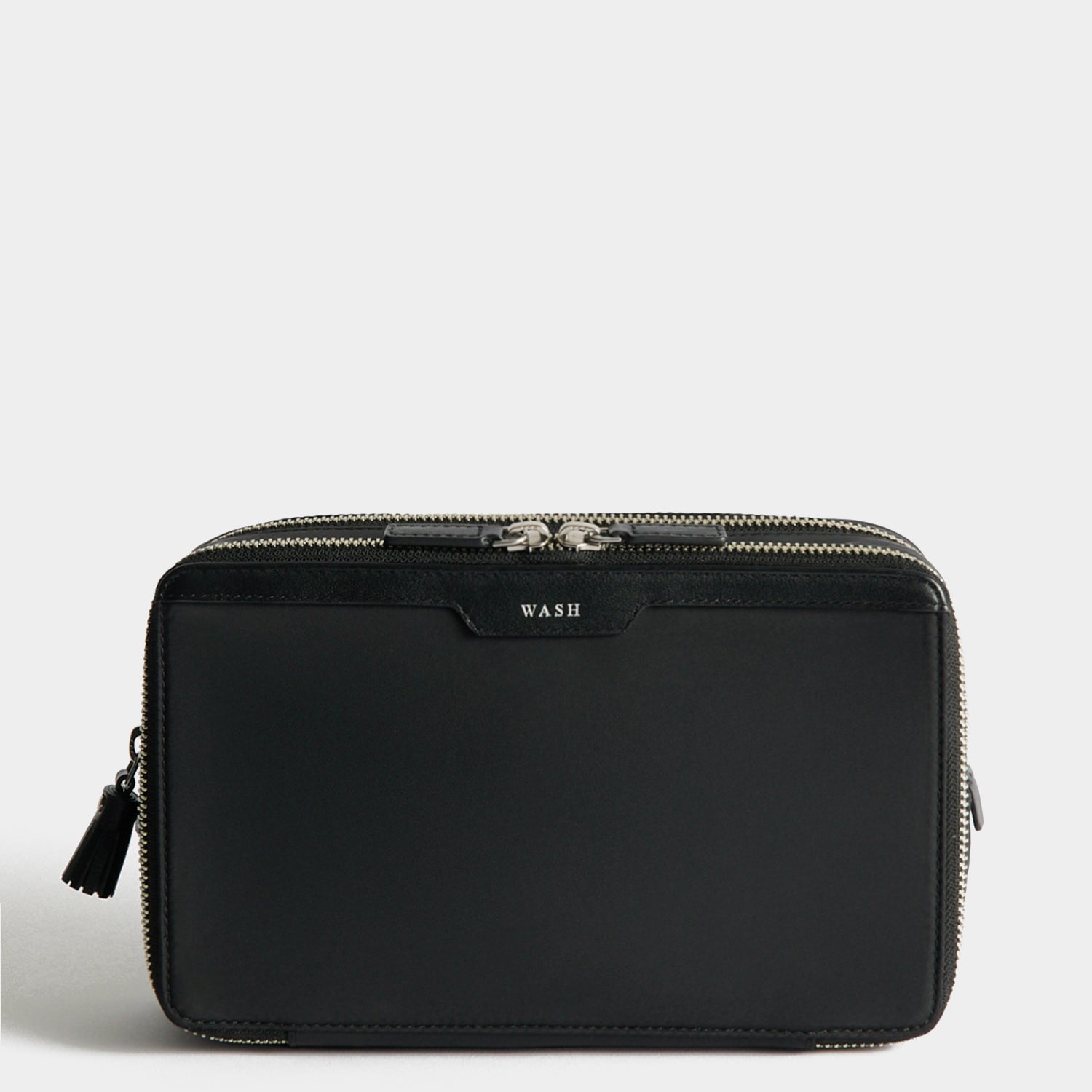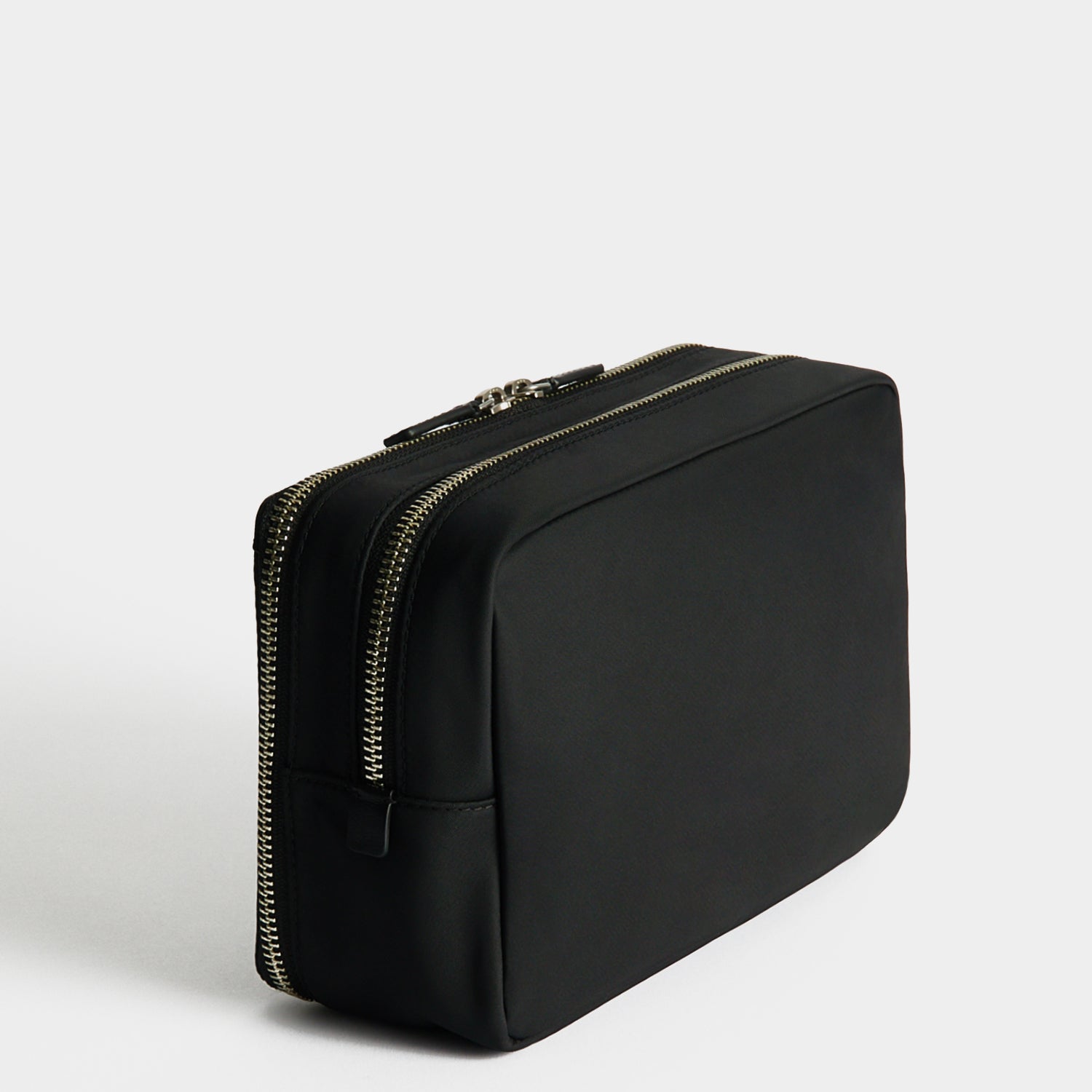 Crafted from ECONYL® regenerated nylon with leather trims and silver zips, our Wash Bag makes a smart – and useful – addition to any man or woman's overnight case. It has two zipped sections – one for bottles and toiletries, and another with designated places for tools (such as a razor, tweezers or brushes) and first aid essentials.