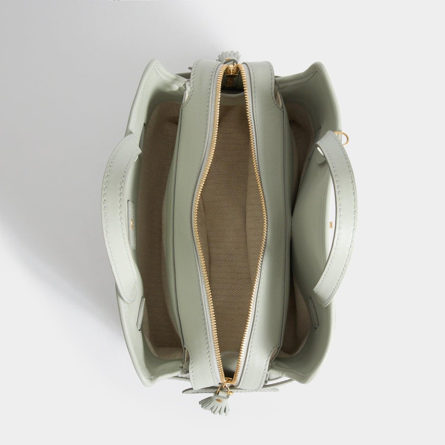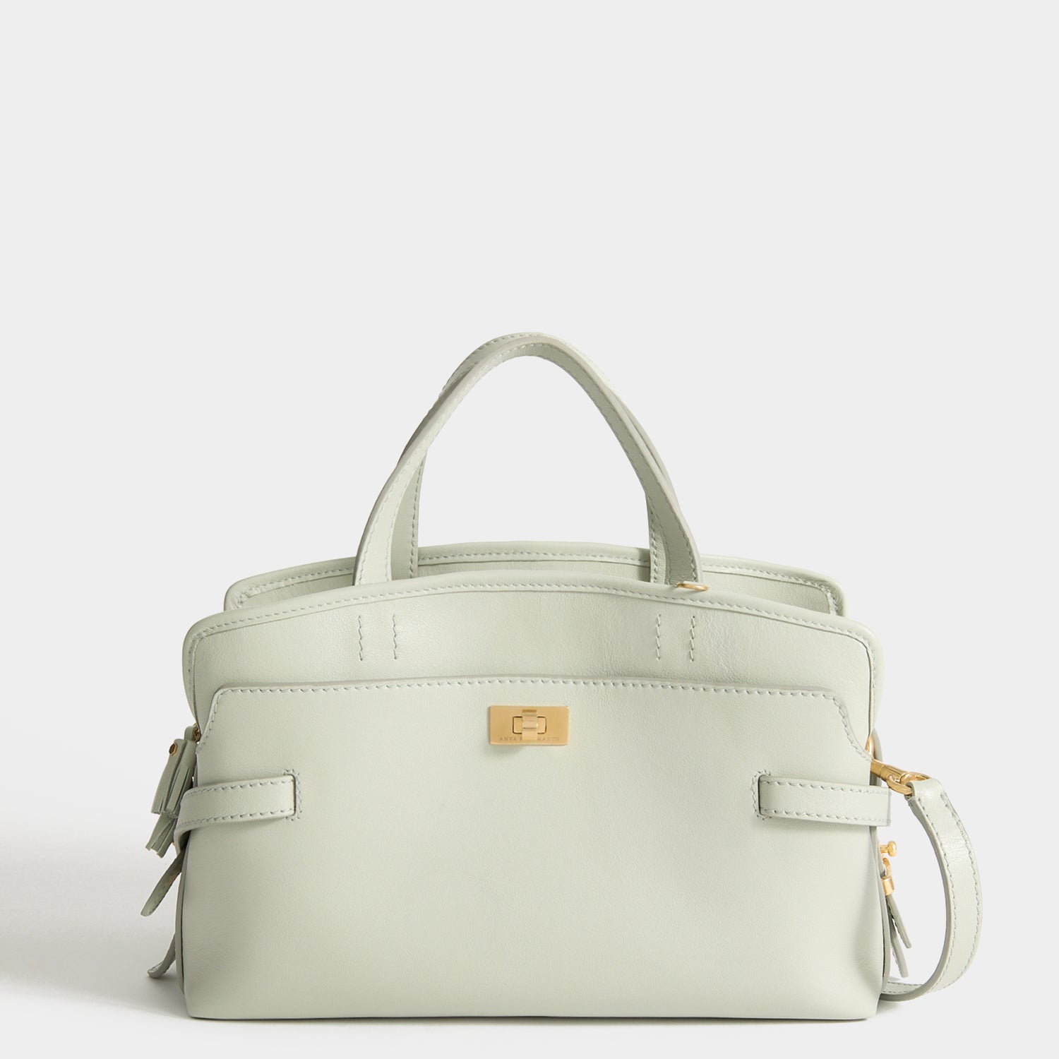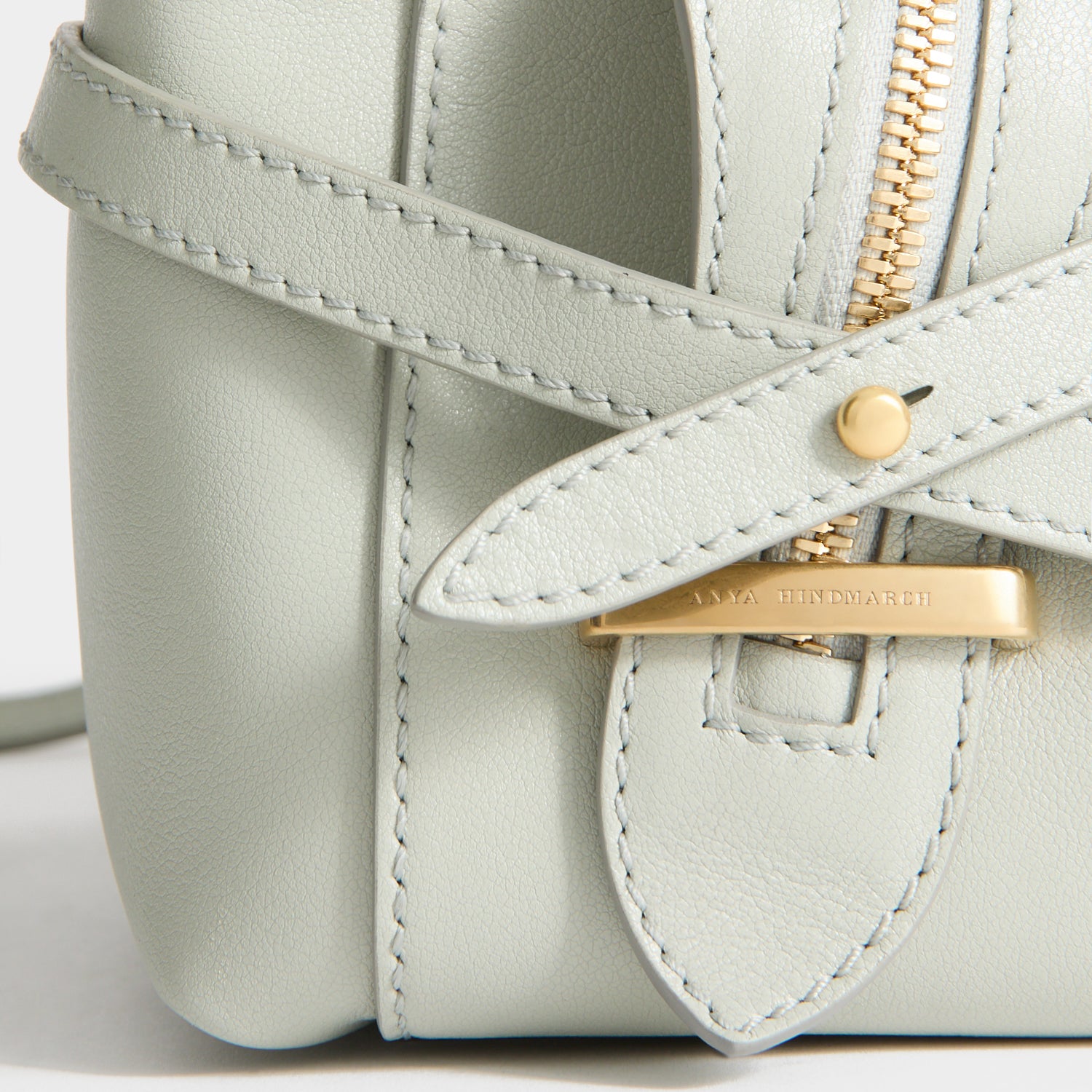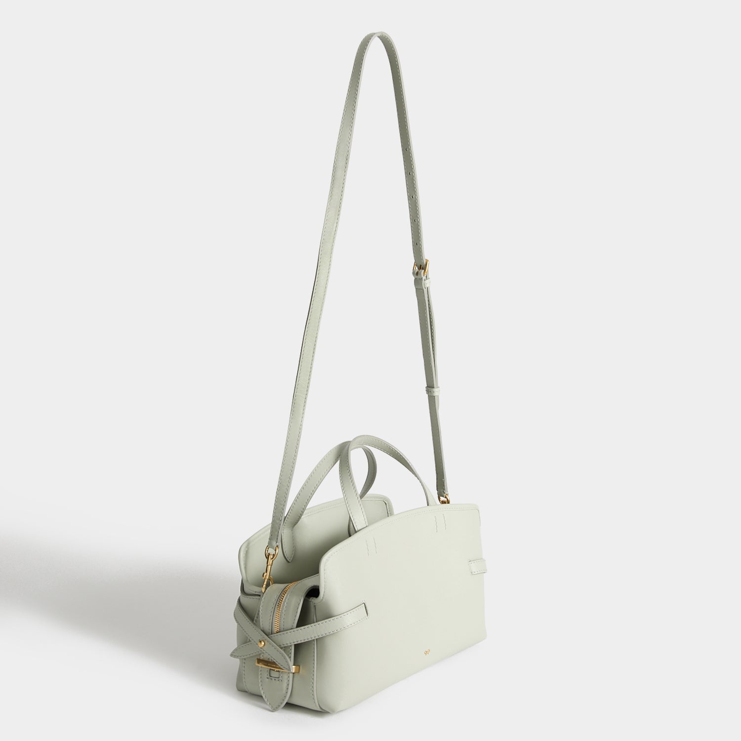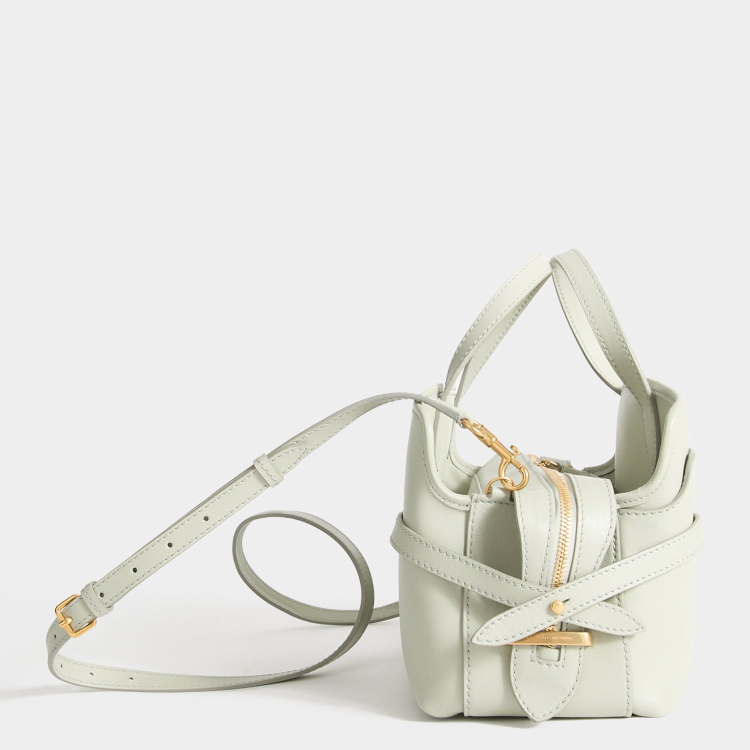 The Small Wilson bag is both beautiful and practical. It is made in Italy from iceberg-green silky calf leather, with three main compartments – including one that's zipped – and a twist lock-secured front pocket, for items you need to access more easily. Tuck the zip ends into the debossed bridge and secure the belt straps for a neater profile, or leave them loose for a softer look.