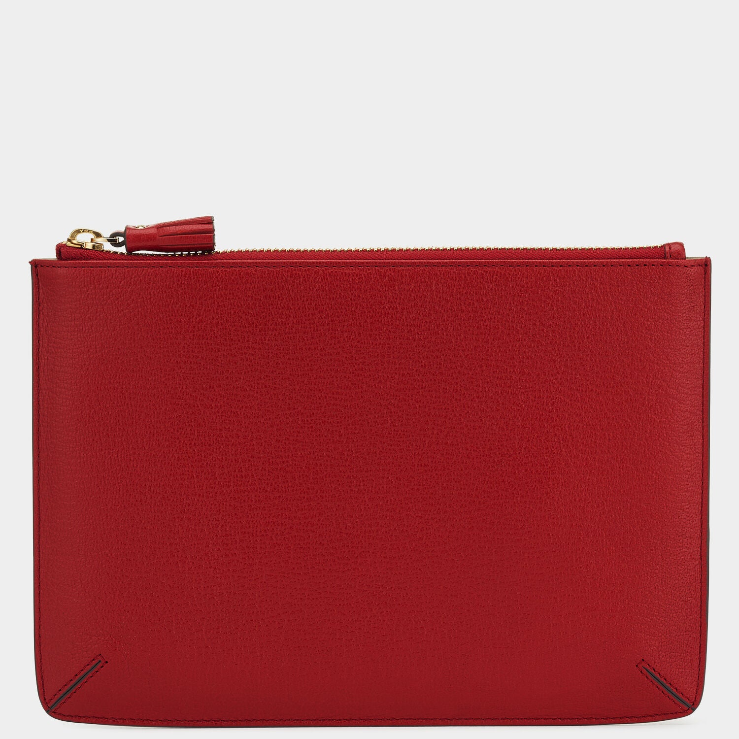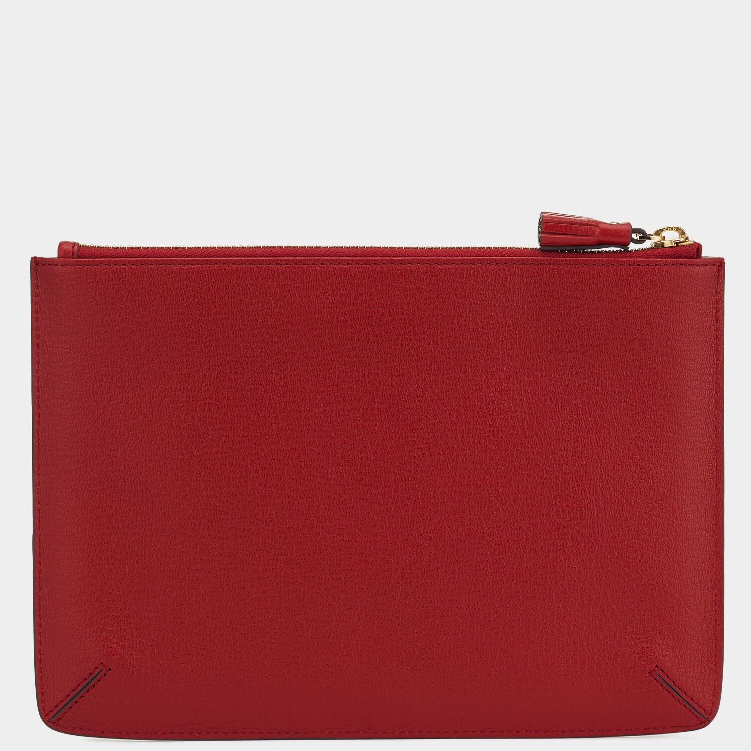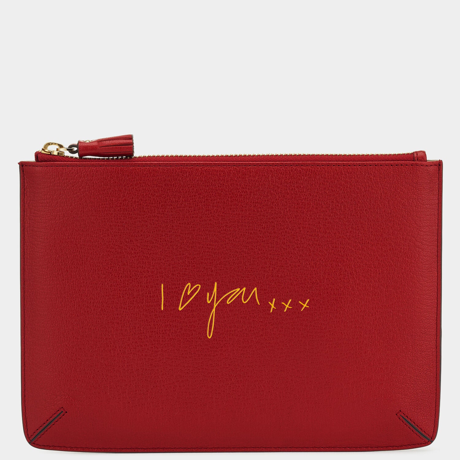 Inspired by her passion for labelling, Anya originally designed the Loose Pocket to hold different currencies, creating a set of pockets embossed with pounds, euros, dollars and yen. This extra-large version is will also hold your phone or business cards and can be embossed on the front with a handwritten message or drawing.